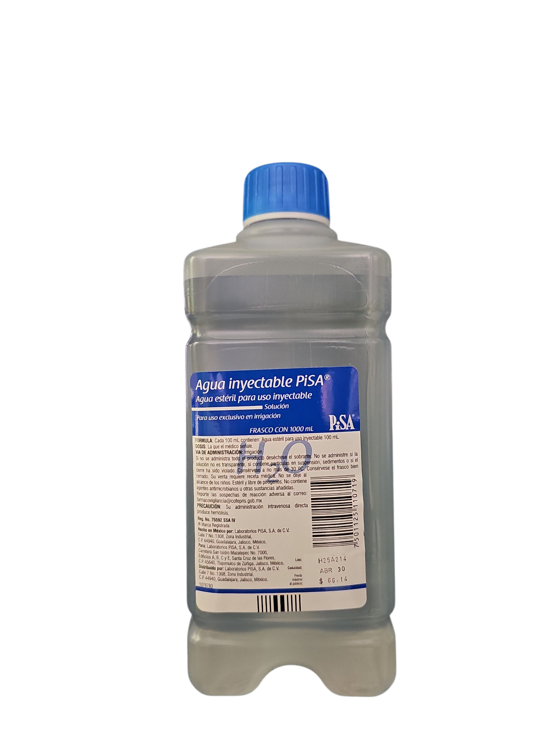 Solución estéril de agua para irrigación, ideal para procedimientos médicos, quirúrgicos o de limpieza especializada. Producto de alta calidad fabricado por Laboratorios PISA.