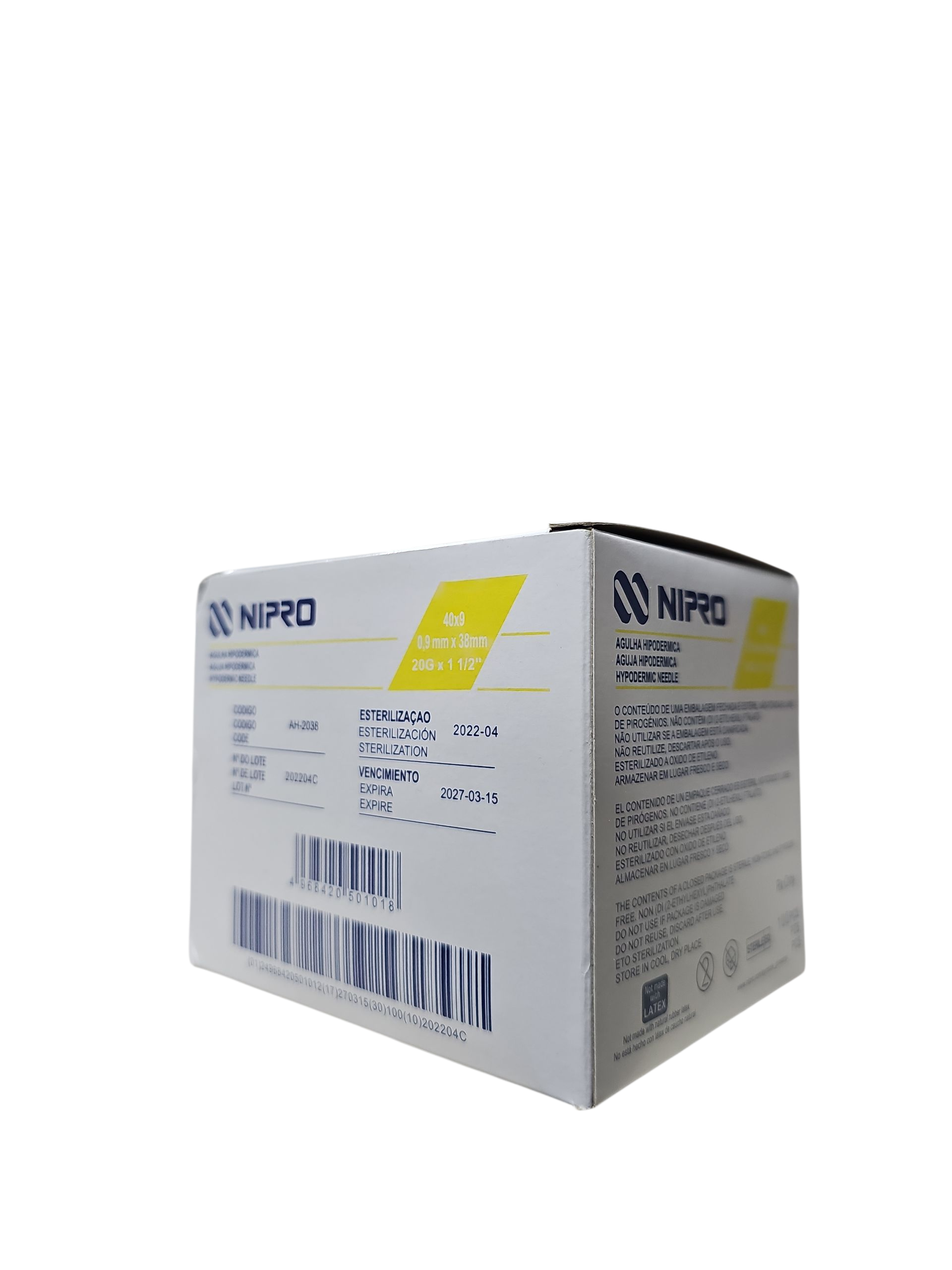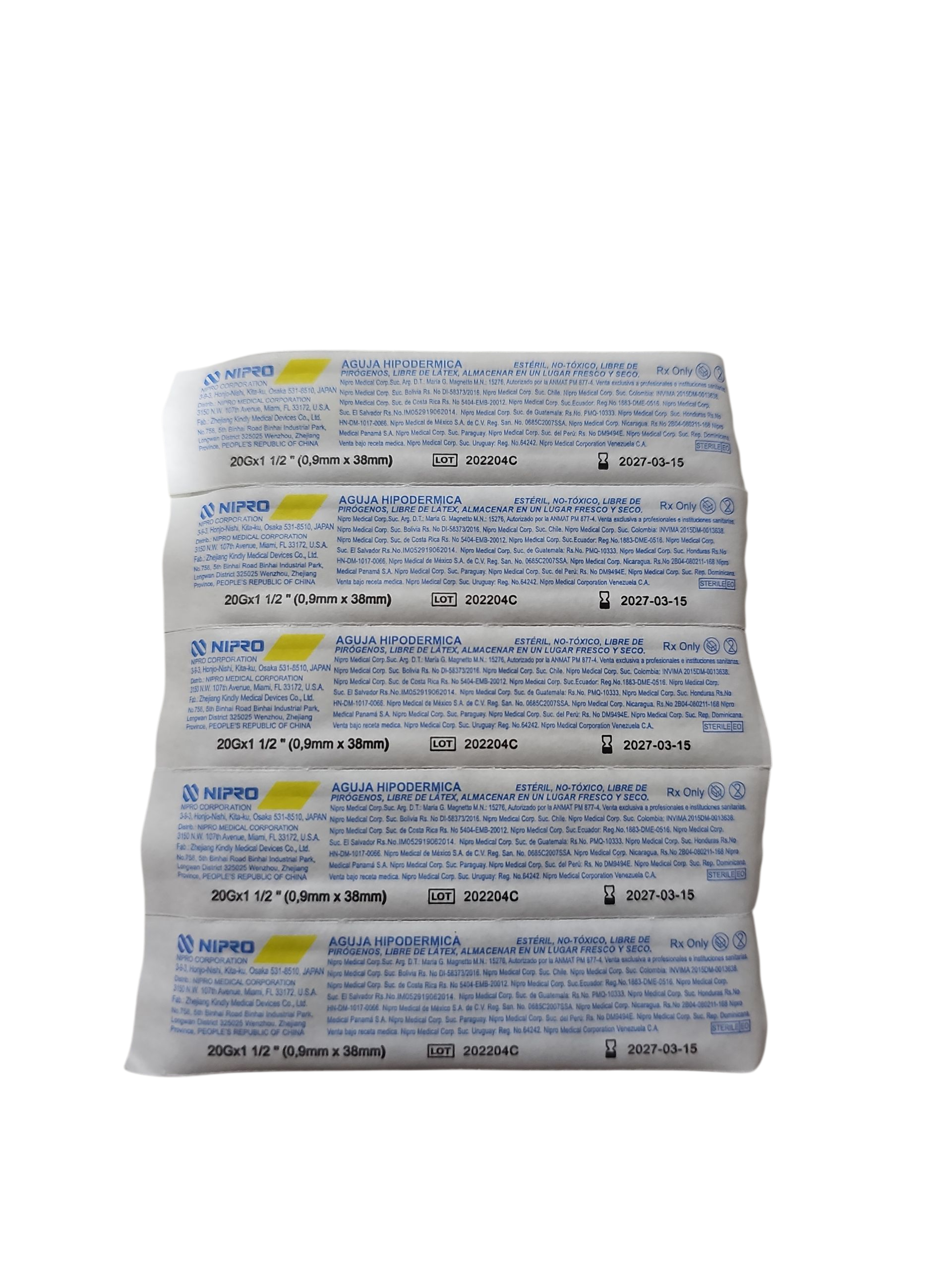 Aguja Hipodérmica Amarilla 20G x 1 1/2'' Nipro 🩺💉 – Caja c/100
