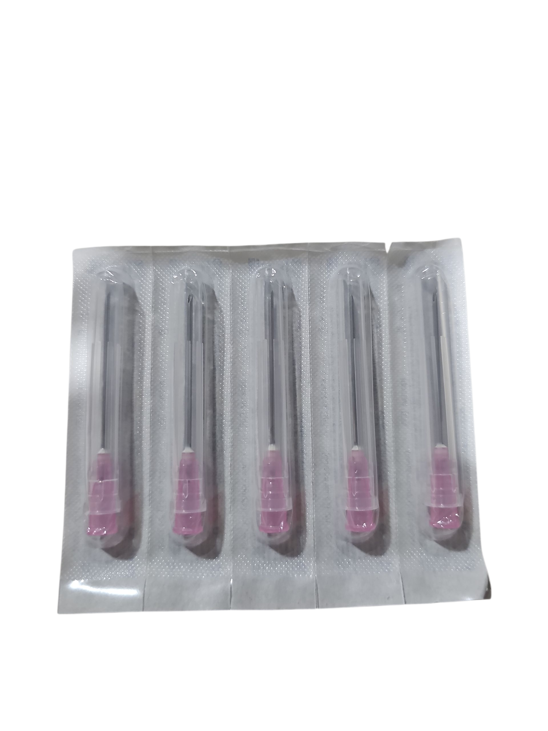El color rosa identifica la medida 18G x 1 1/2'' (38 mm), recomendada para procedimientos que requieren alto flujo, como la extracción de sangre, administración de soluciones y otros usos médicos específicos 💧.