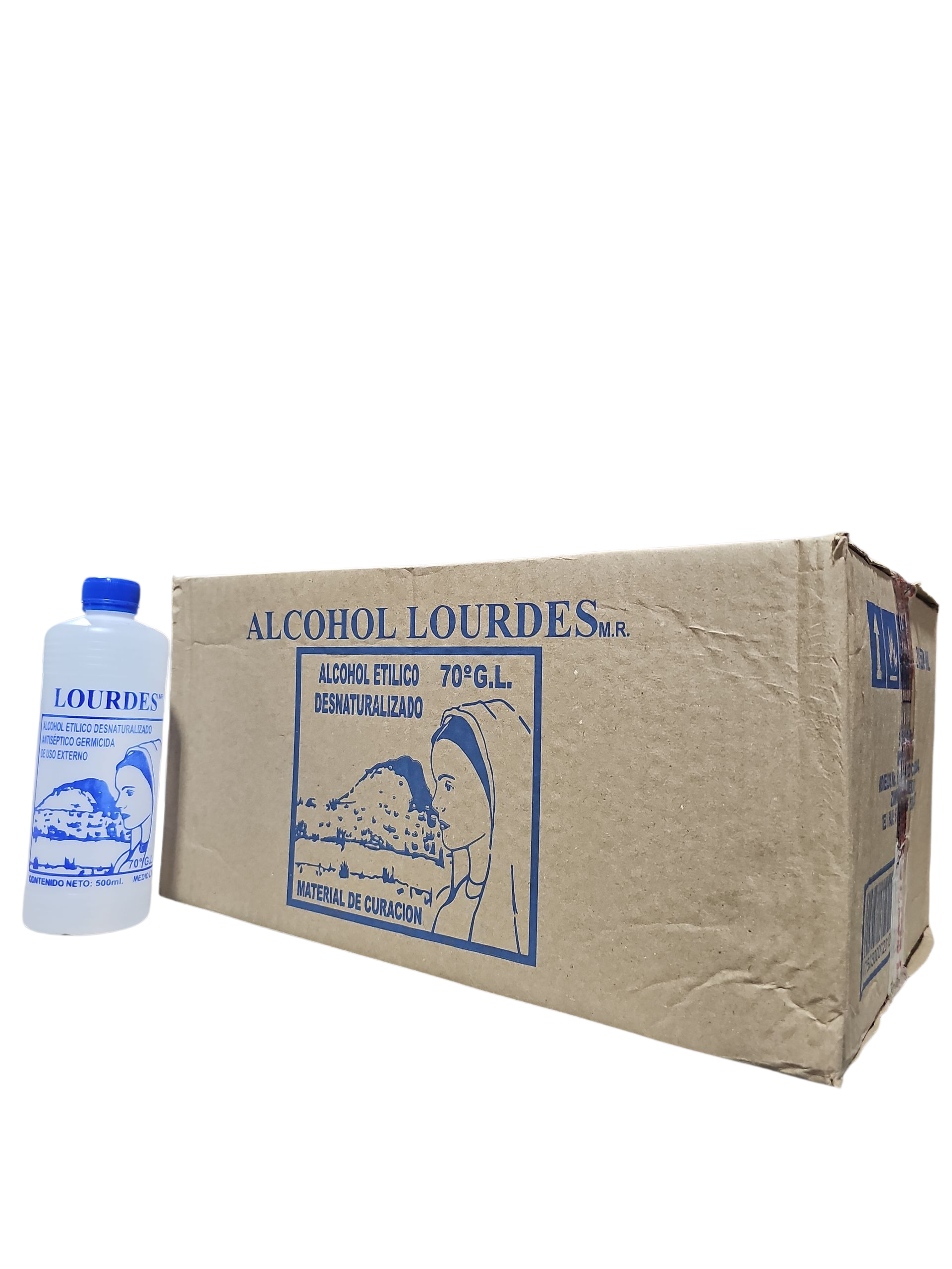 Alcohol Desnaturalizado 70° Lourdes 500mL - Caja Con 24 Piezas