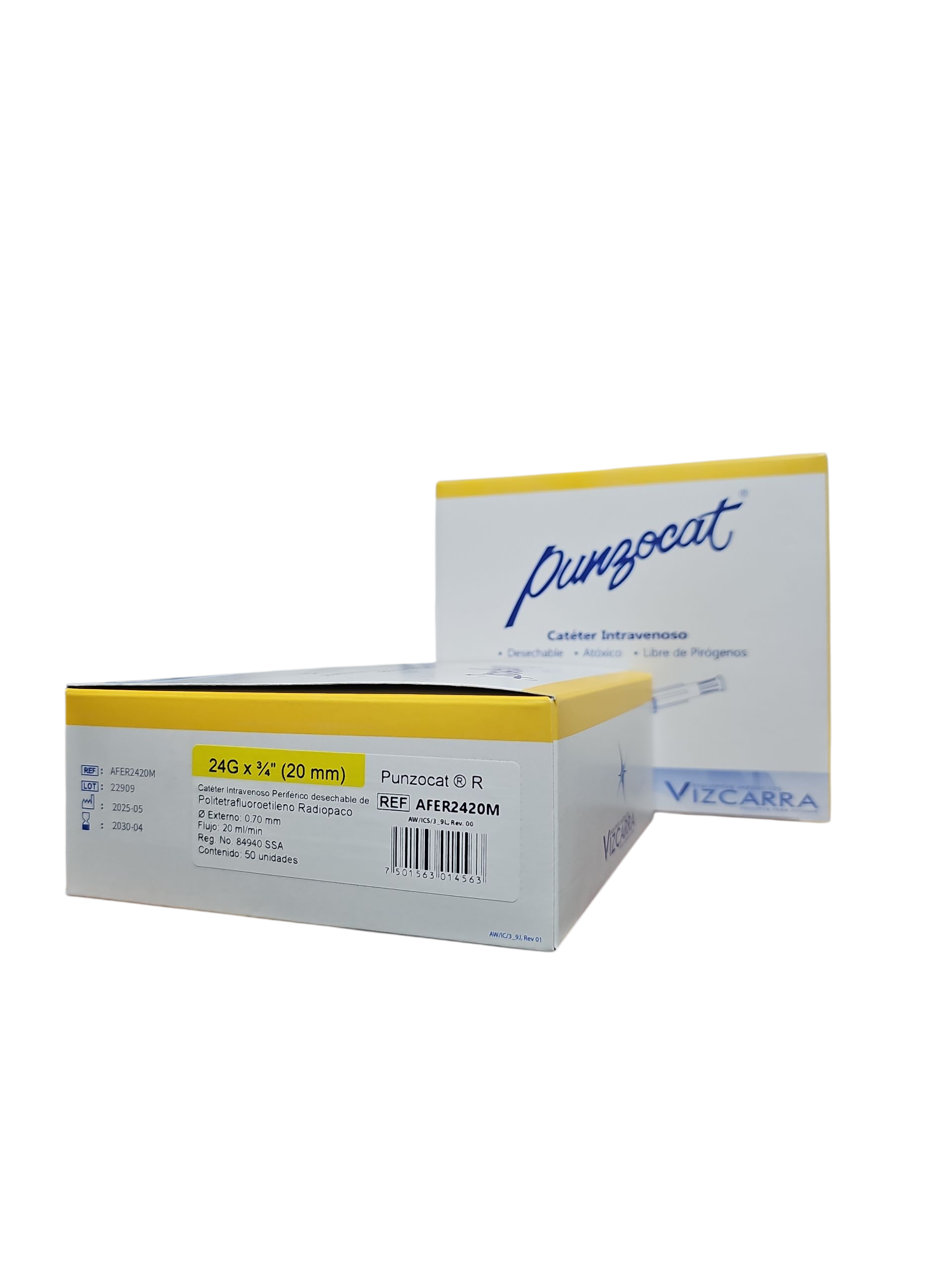 Catéter Punzocat #24 Amarillo VIZCARRA - C/50 Unidades