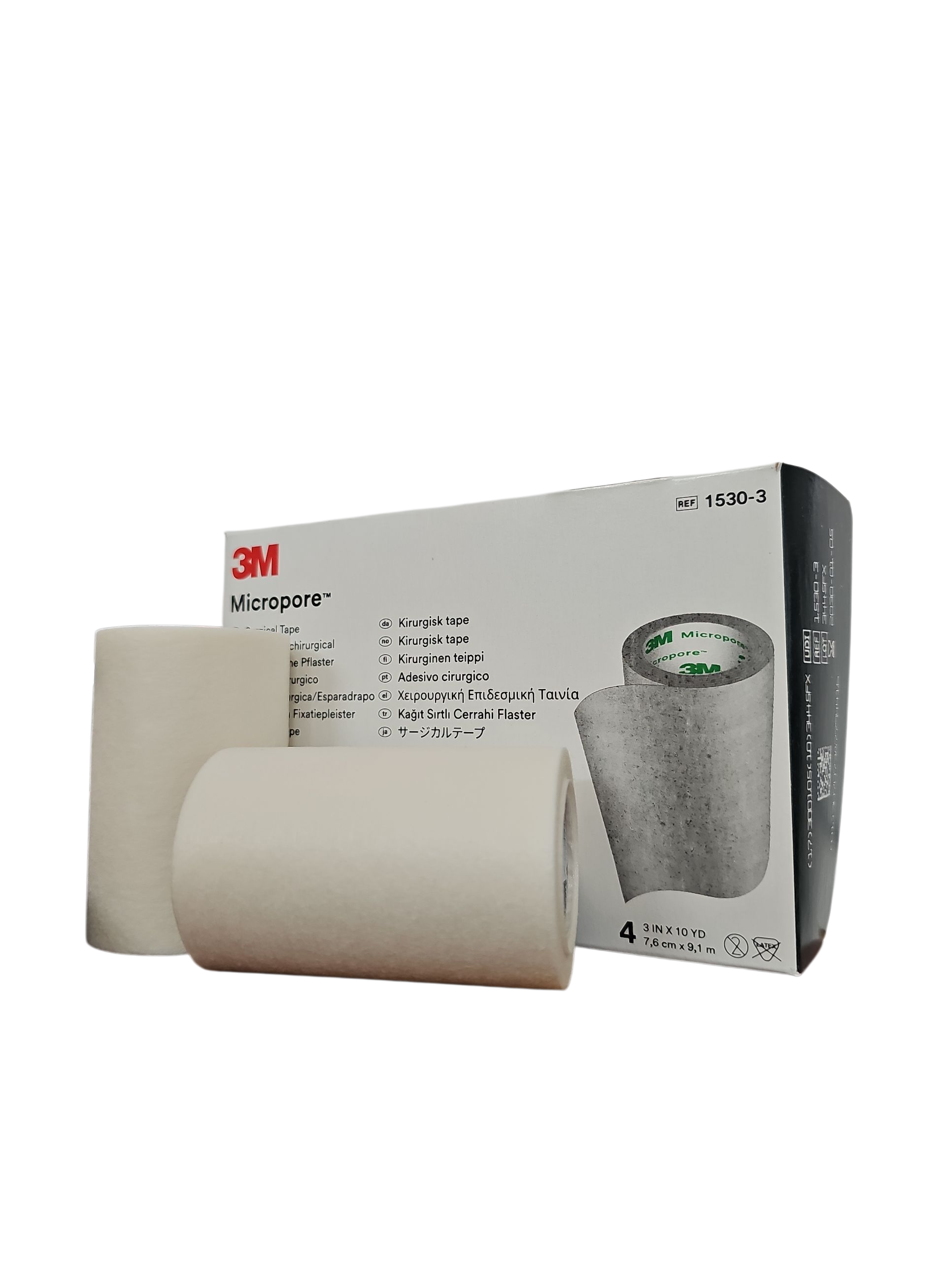 Cinta adhesiva microporosa de alta calidad de la marca 3M, ideal para fijación de apósitos, vendajes y dispositivos médicos en áreas amplias. Su diseño transpirable permite que la piel respire, favoreciendo una cicatrización adecuada y evitando irritaciones.