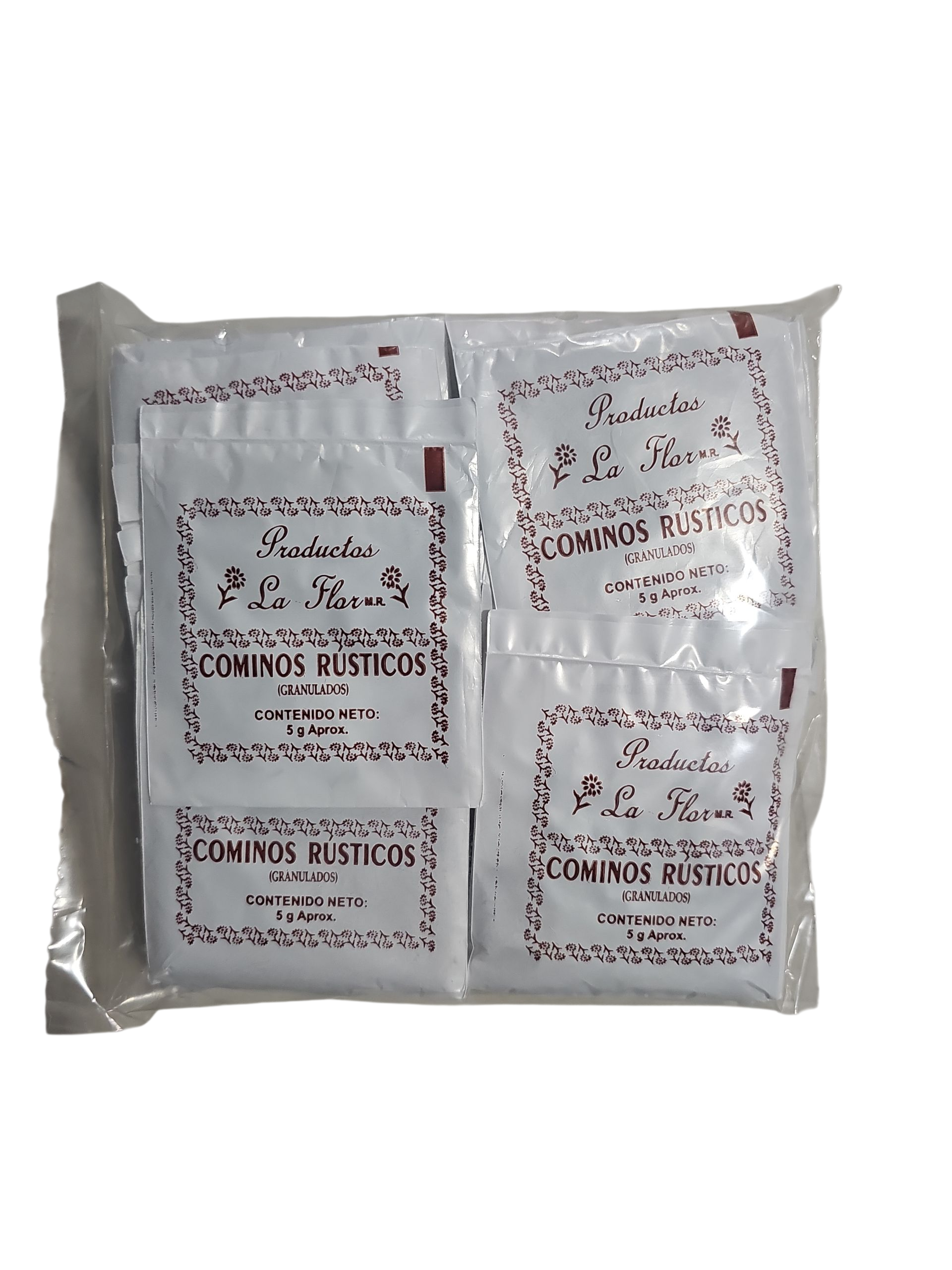 Los Cominos Rústicos REBÓTICA FLOR DE LIZ son una especia natural utilizada tanto en la cocina como en preparaciones tradicionales. Su presentación en sobres individuales facilita su uso, dosificación y conservación del aroma y sabor.