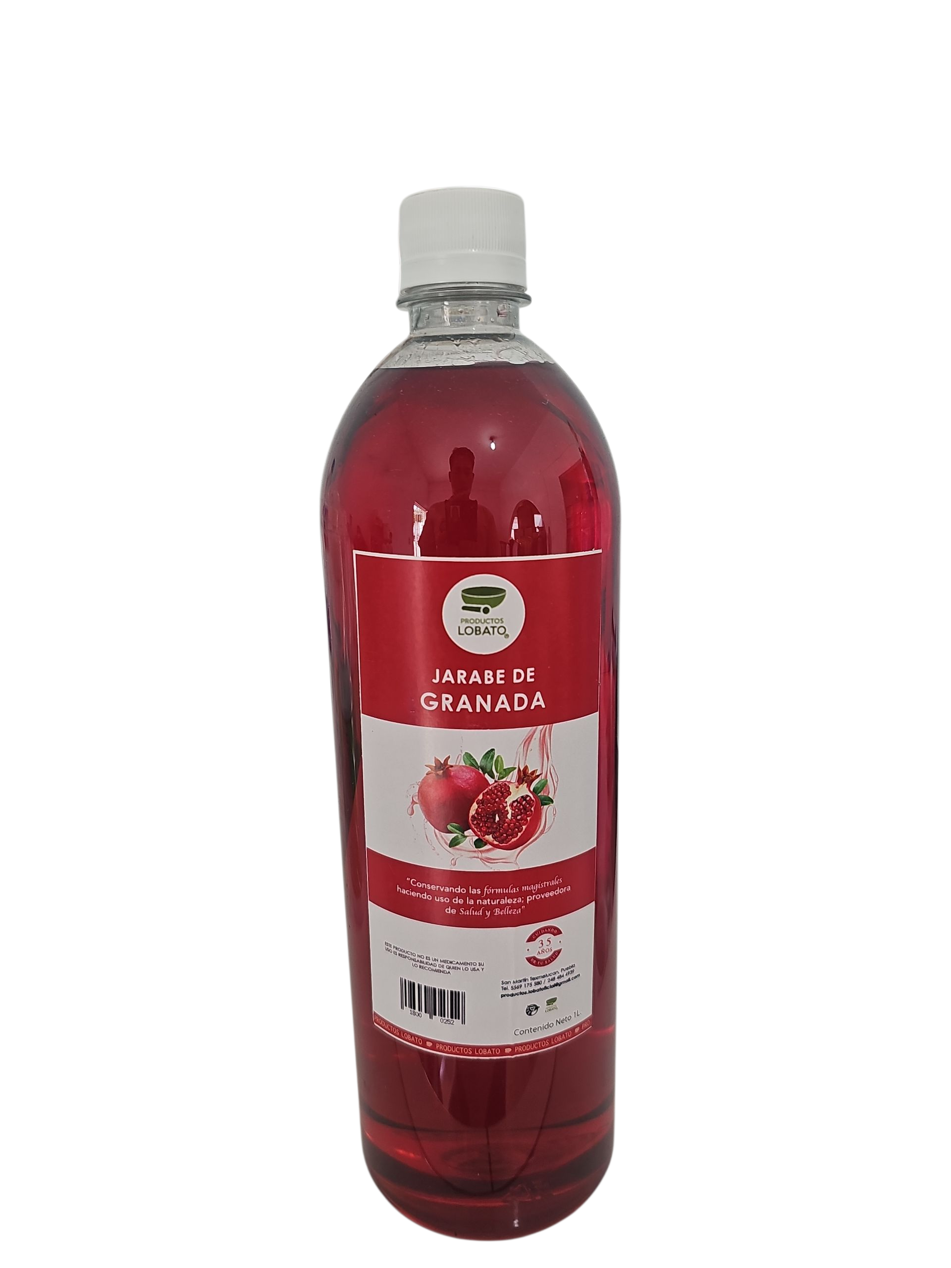 Jarabe de Granada 1 Litro, elaborado a base de extracto de granada, conocido por su sabor dulce y refrescante. Puede disfrutarse solo, diluido en agua o como complemento para preparar bebidas y postres. Además, la granada es apreciada por sus propiedades antioxidantes y digestivas.
