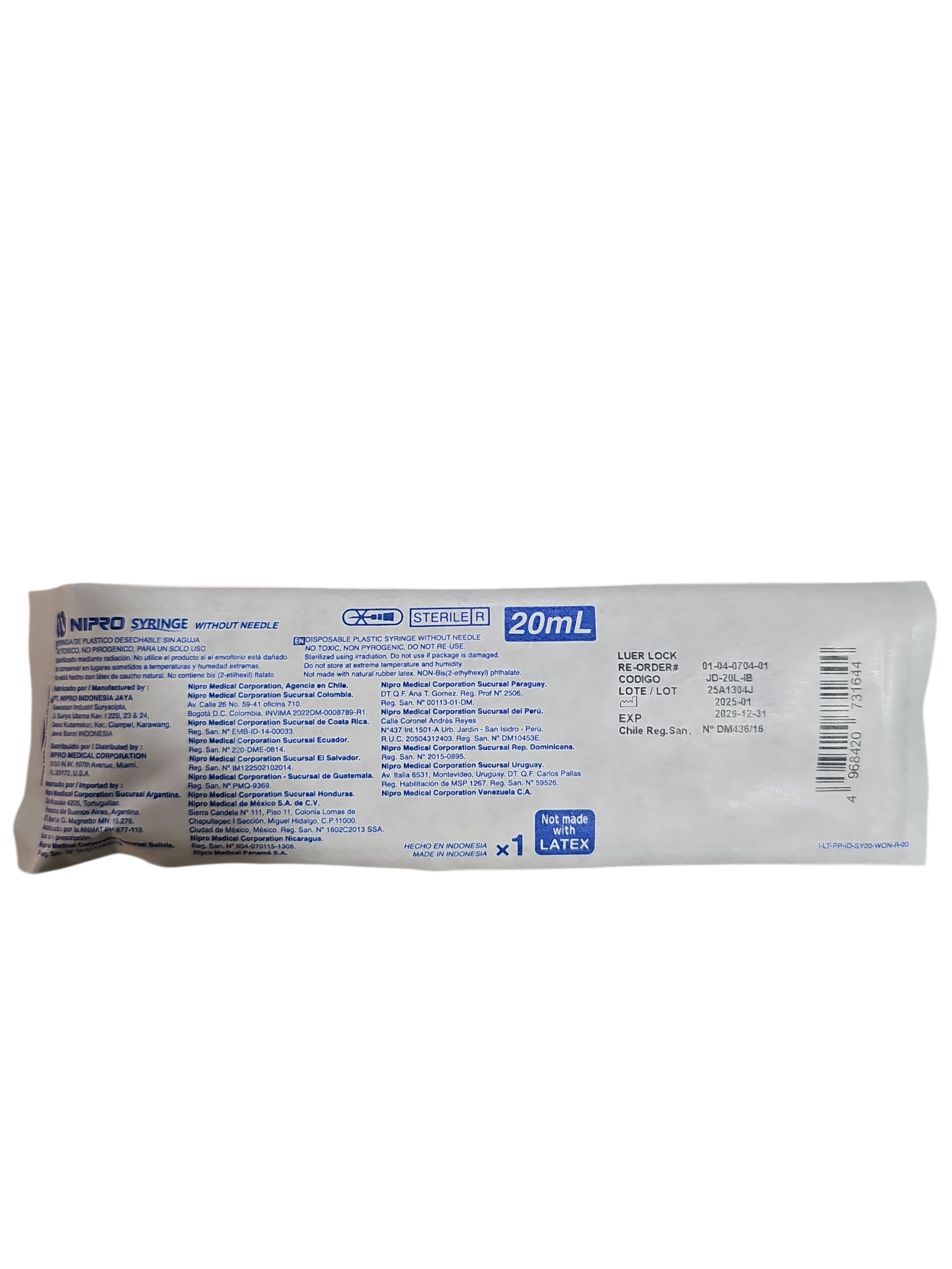 Jeringa Nipro 20mL Sin Aguja - Paquete de 50 Piezas