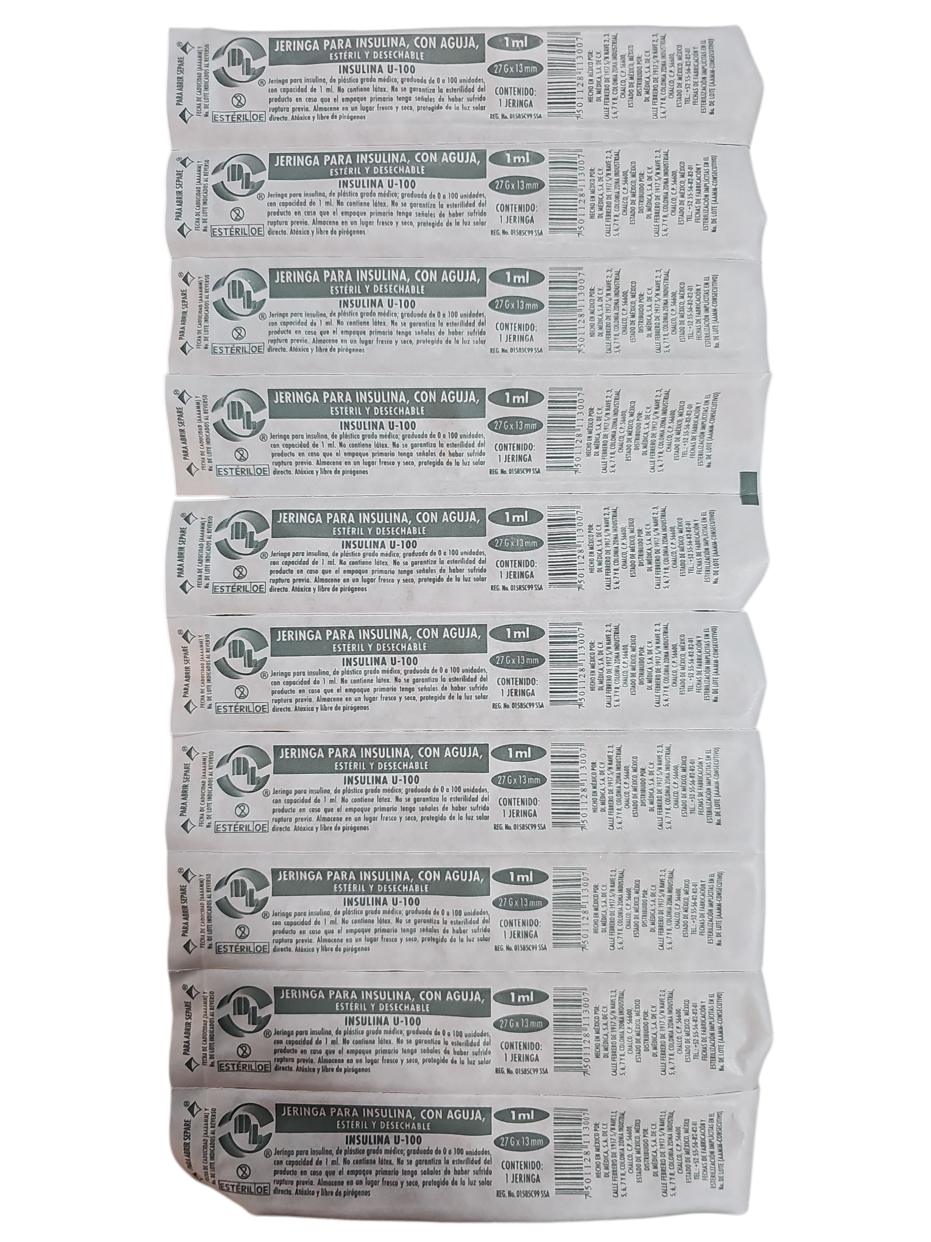 Jeringa Para Insulina Con Aguja 1mL Gris DL - Paquete Con 200 Piezas