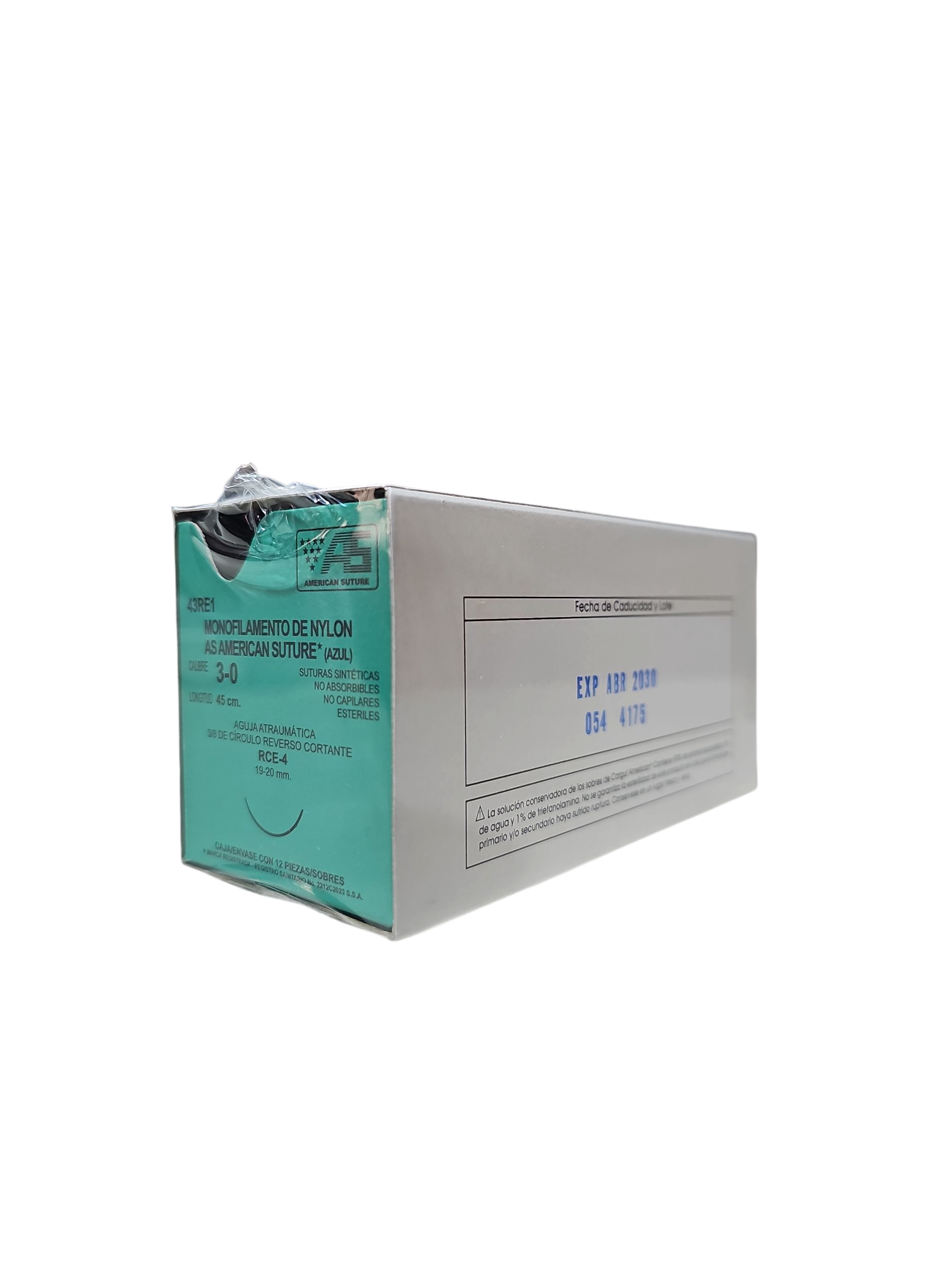 Sutura Monofilamento de Nylon 3-0 AS AMERICAN SUTURE – Paquete de 12 Piezas