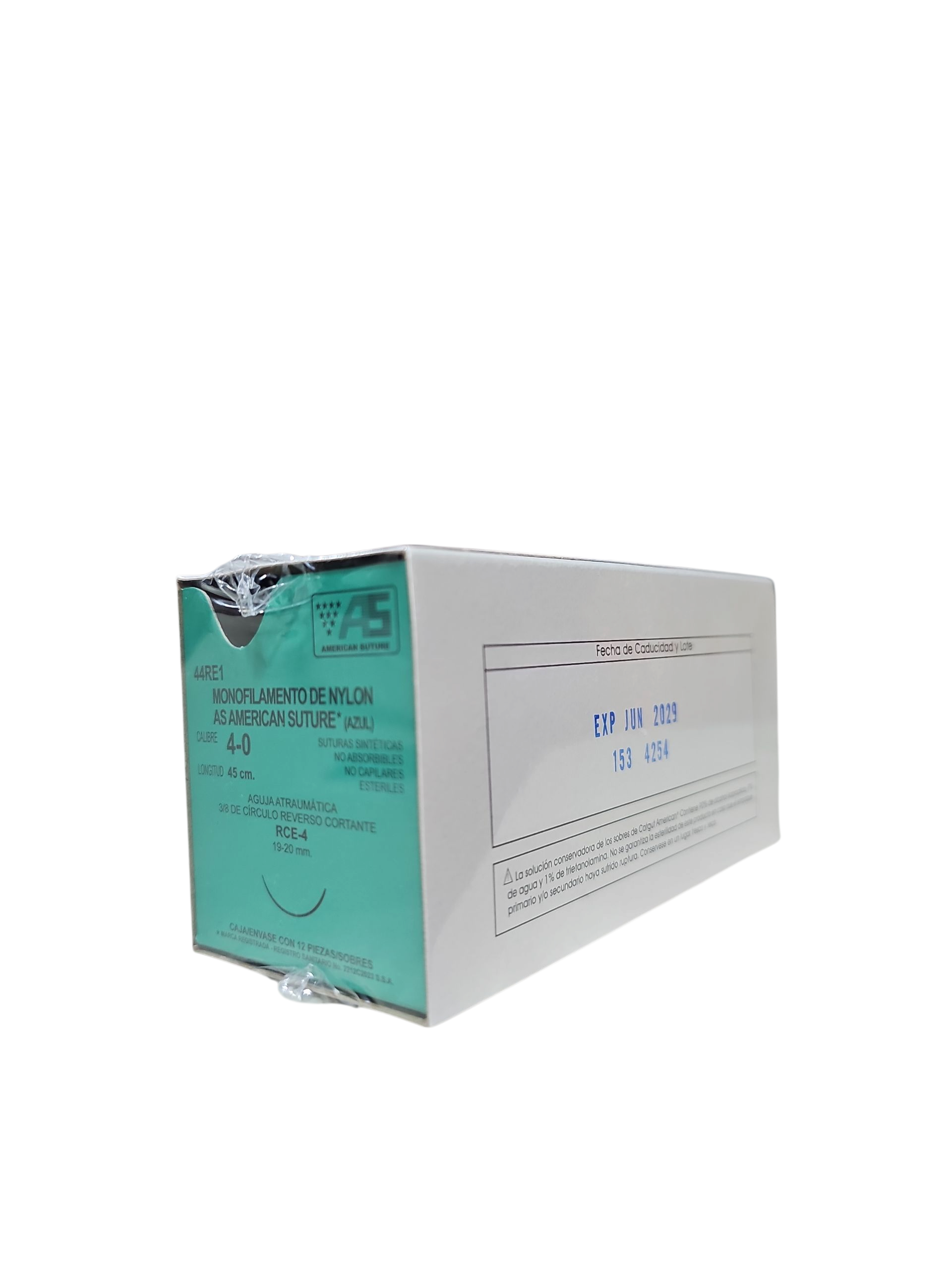Sutura Monofilamento de Nylon 4-0 AS AMERICAN SUTURE – Paquete de 12 Piezas