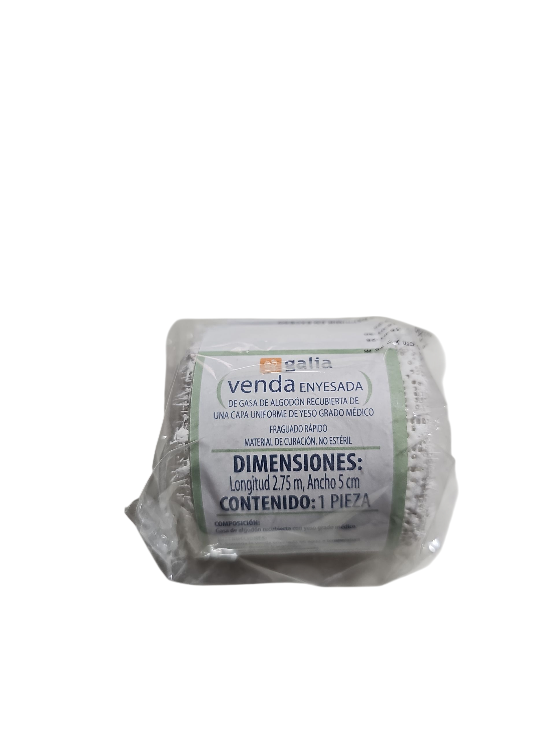 Venda de Yeso 5cm marca GALIA, ideal para inmovilización de fracturas, esguinces y tratamientos ortopédicos. Su composición permite un fraguado rápido y firme, brindando soporte y estabilidad a la zona afectada. De fácil aplicación y ajuste, garantiza una adecuada protección durante el proceso de recuperación.